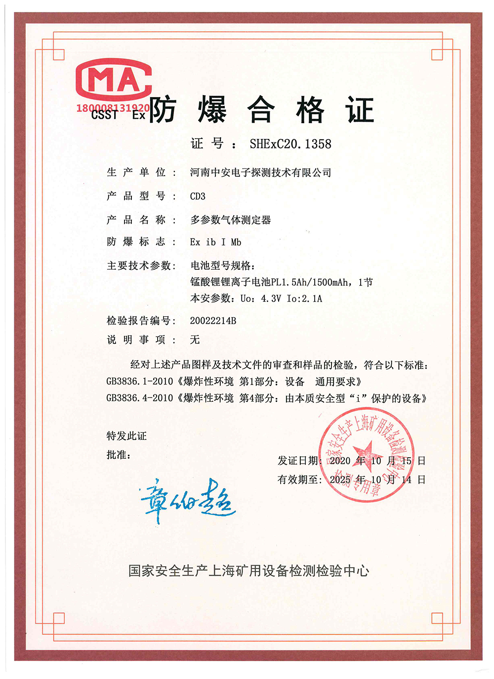 CD3防爆合格證