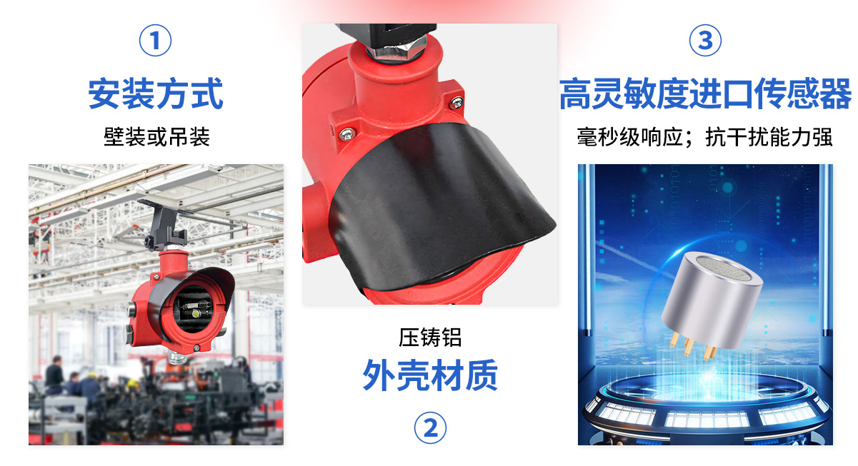 | 指示燈狀態 | 預熱黃色常亮;正常檢測綠色常亮;預警黃色閃亮;報警紅色常亮 |