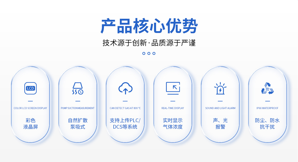 | 工作方式 | 固定式安裝,在線檢測(cè),擴(kuò)散式測(cè)量,管道式、流通式、泵吸式可選 |